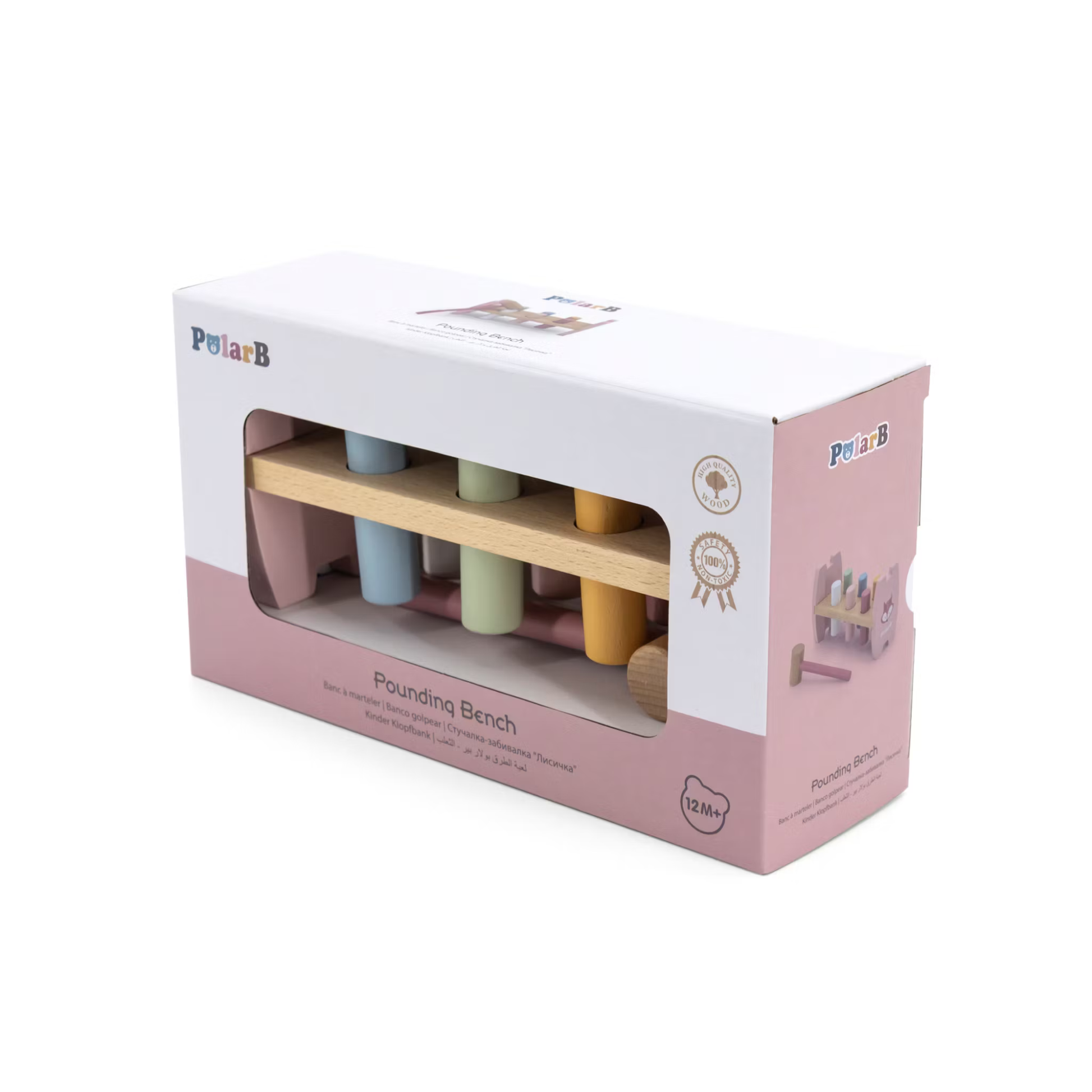 En tidlös och pedagogisk träleksak som uppmuntrar aktiv lek och tidig motorikutveckling. Barn älskar att hamra, utforska och se hur bultarna förändras när de slås ned – en rolig och stimulerande aktivitet som ger både ljud, rörelse och känsla av prestation.