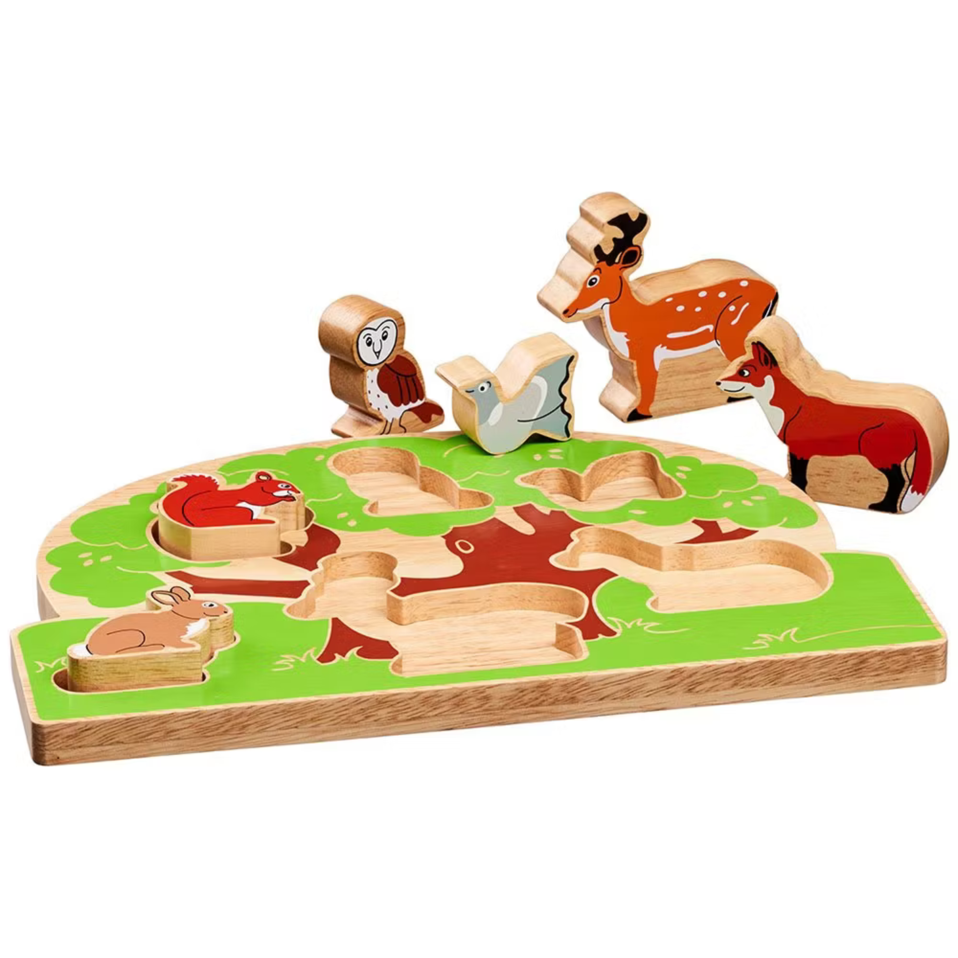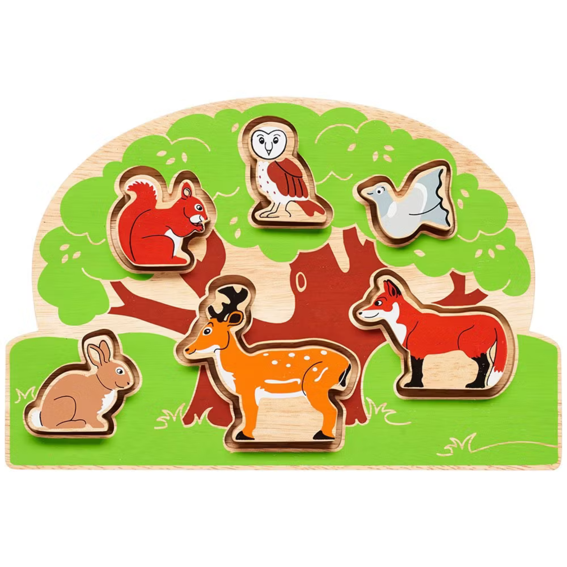 Detta fina djurpussel i trä från Lanka Kade innehåller sex stabila pusselbitar med söta djurmotiv från skogen. Varje figur kan matchas med sin plats på plattan och är 20 mm tjock, vilket gör att bitarna även kan stå upp och användas som små leksaksfigurer. Ett roligt och utvecklande pussel som tränar både motorik och logiskt tänkande.