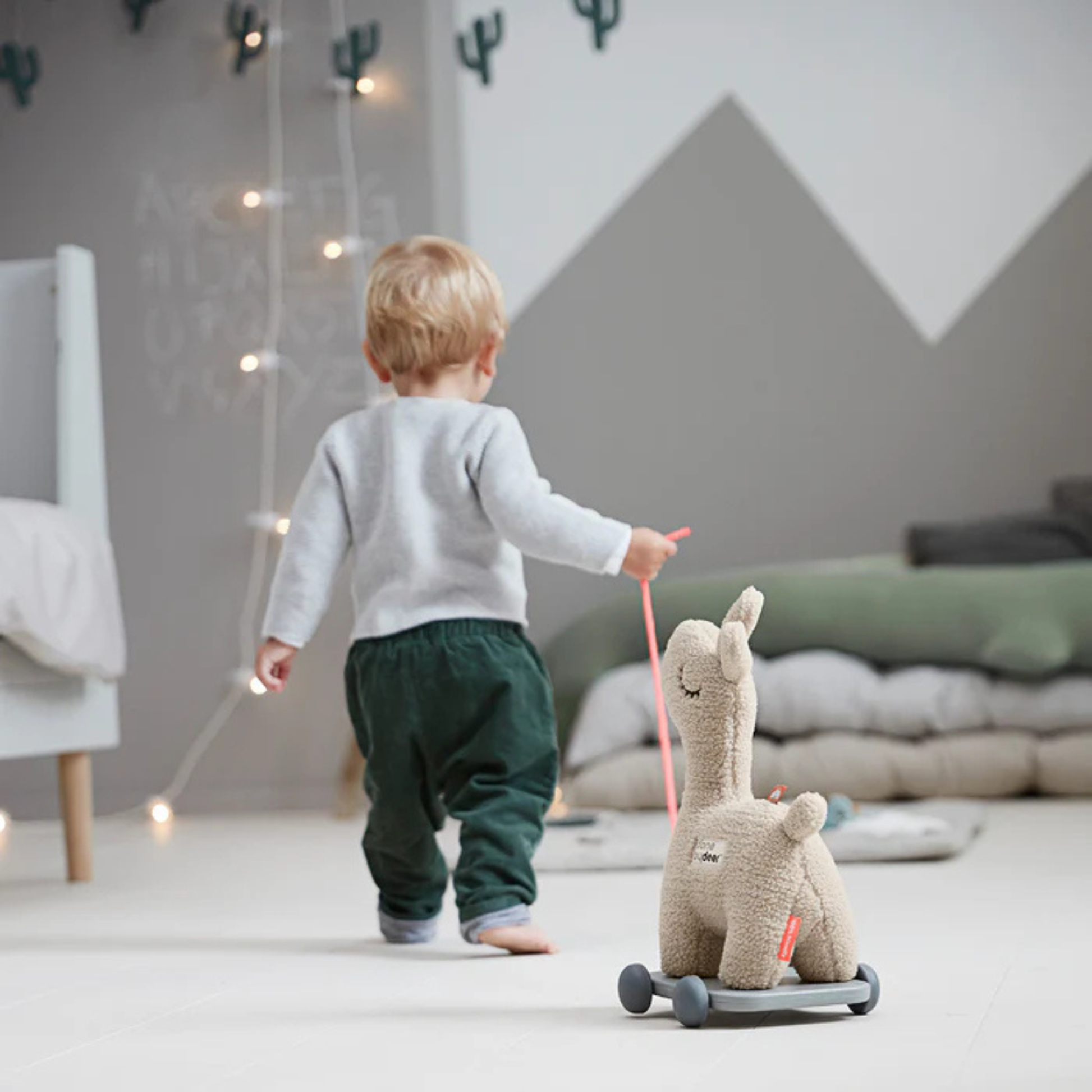 En söt 2-i-1 dra-leksak från Done by Deer där Lalee följer barnet på små äventyr i hemmet. Den mjuka Lalee sitter stadigt på vagnen tack vare magnetfästen och kan enkelt tas av för lek eller sovstund. Tysta silikomhjul skyddar golvet och uppmuntrar till de första stegen. Från 12 månader.