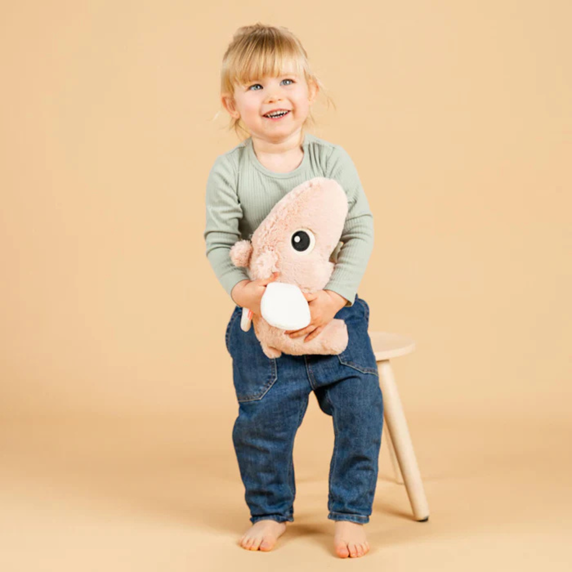 Ett charmigt gosedjur med prasslande vingar, mjuk päls och stabil ståfunktion. Perfekt både som lekkamrat och dekoration i barnrummet. Fylld med återvunnet material och trygg att använda från nyfödd.