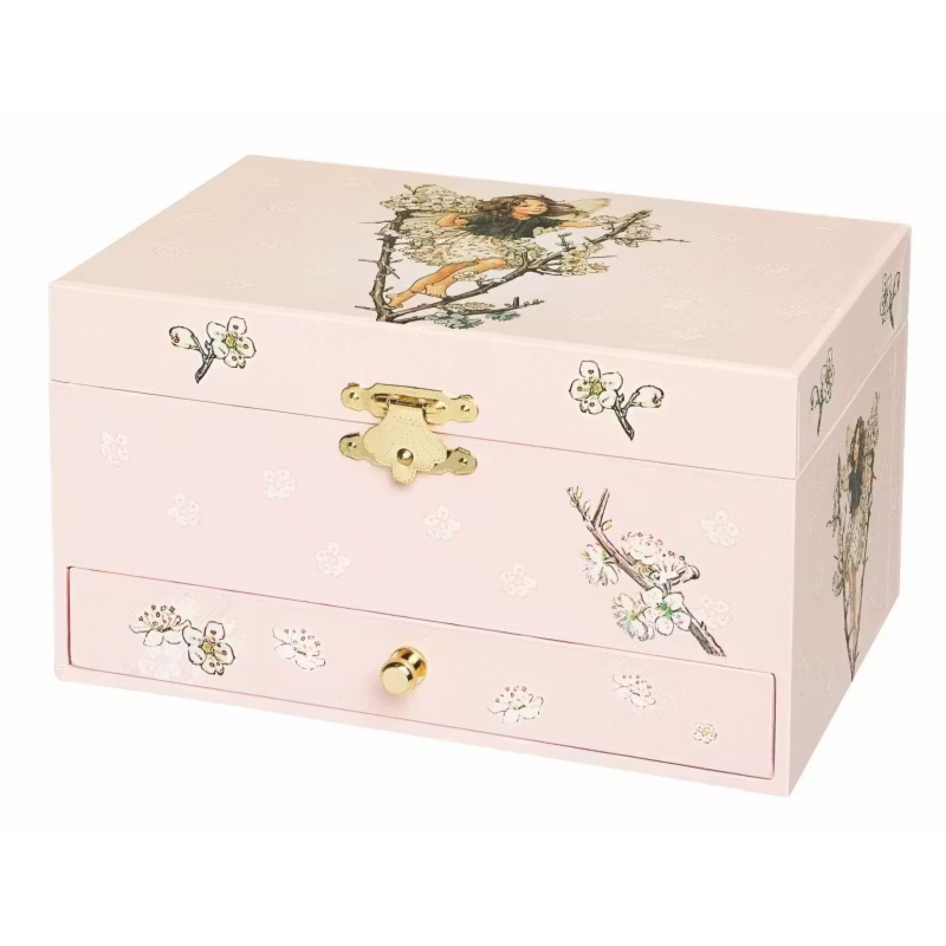 Ett magiskt smyckeskrin från Flower Fairies med dansande älva, perfekt som gåva och som en vacker inredningsdetalj i barnrummet. Skrinet spelar Schuberts “Serenade” när locket öppnas och den lilla älvan börjar dansa, något som gör upplevelsen både rofylld och förtrollande.